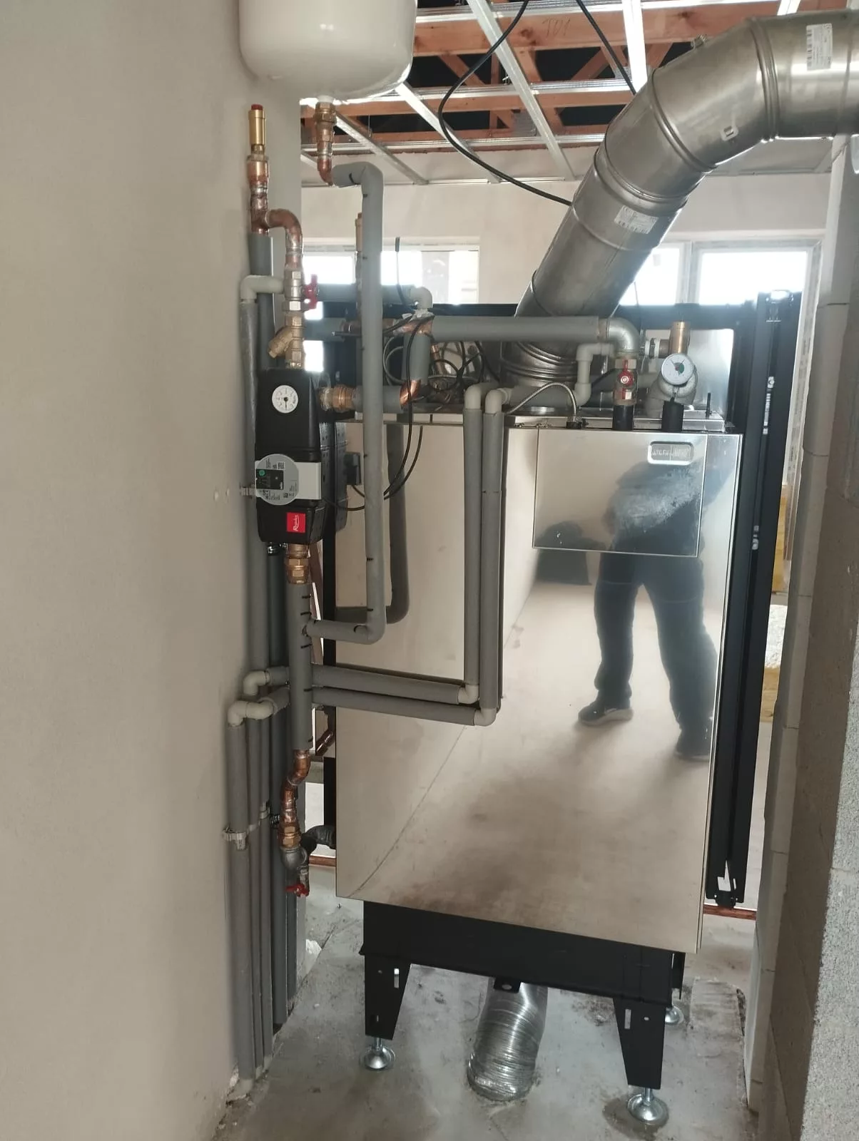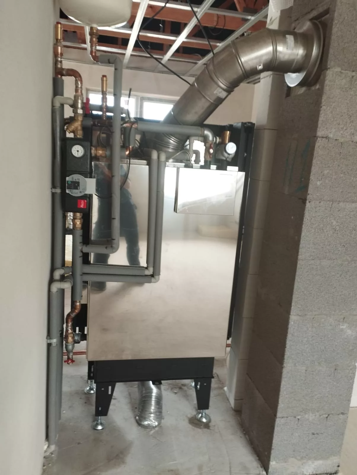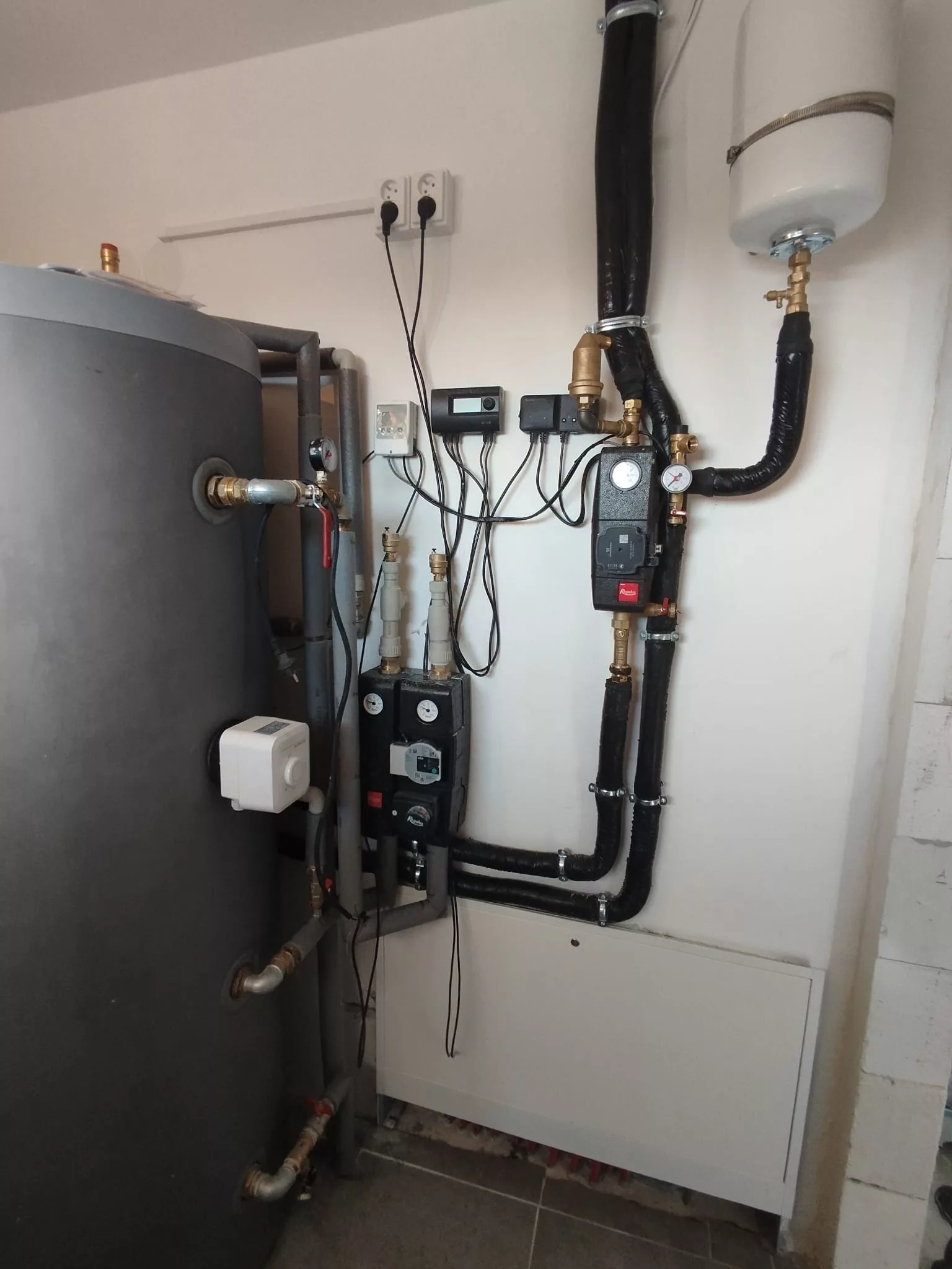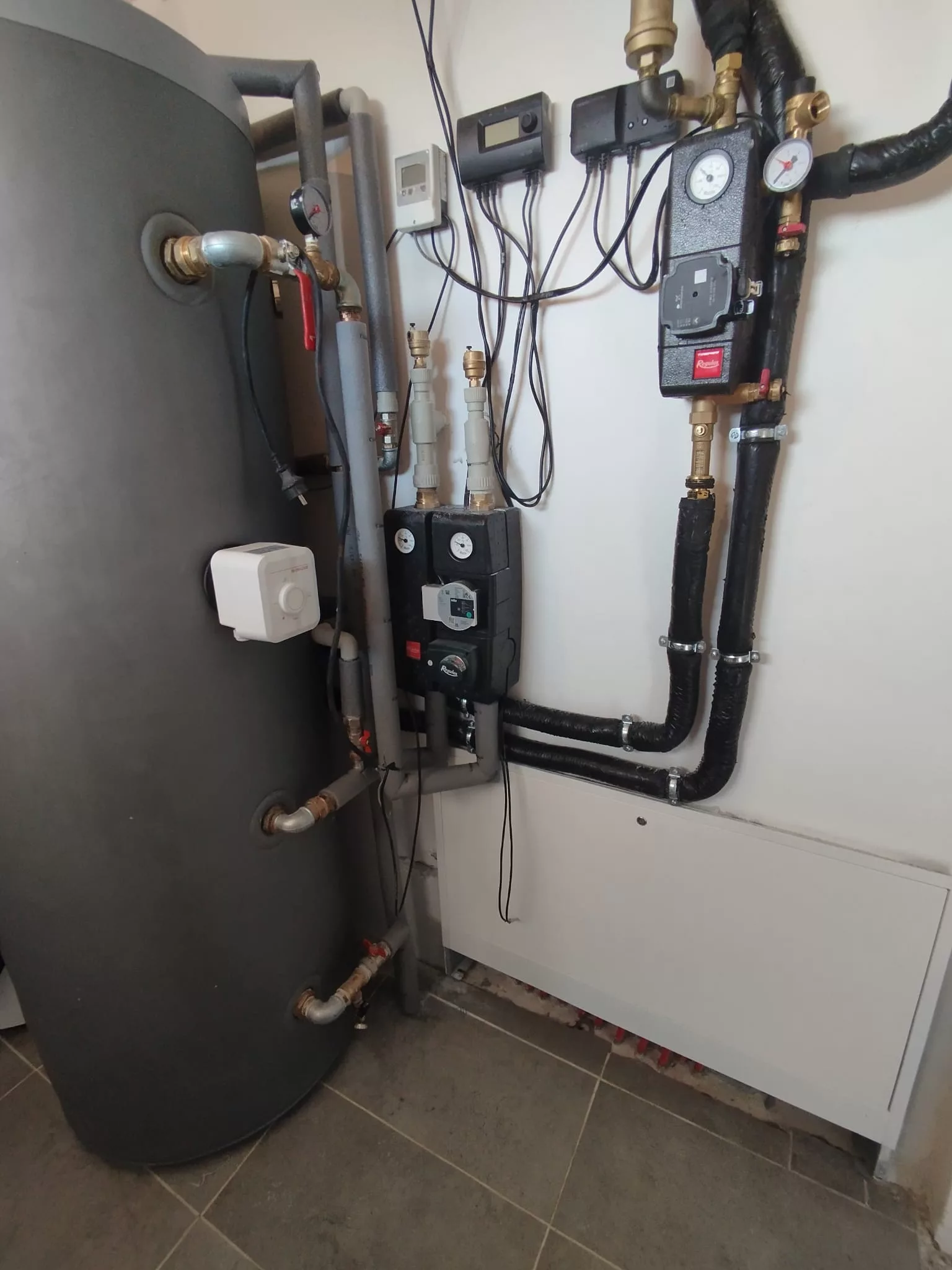 Byla provedena instalace moderního topného systému s napojením na krb, vodní podlahové vytápění a solární panely pro ohřev vody. Systém spojuje komfort a energetickou účinnost, zajišťuje stabilní vytápění, nepřetržitou dodávku teplé vody a snižuje náklady na energie. Takové řešení umožňuje udržovat teplo v domě po celý rok a vytvářet útulnou atmosféru.